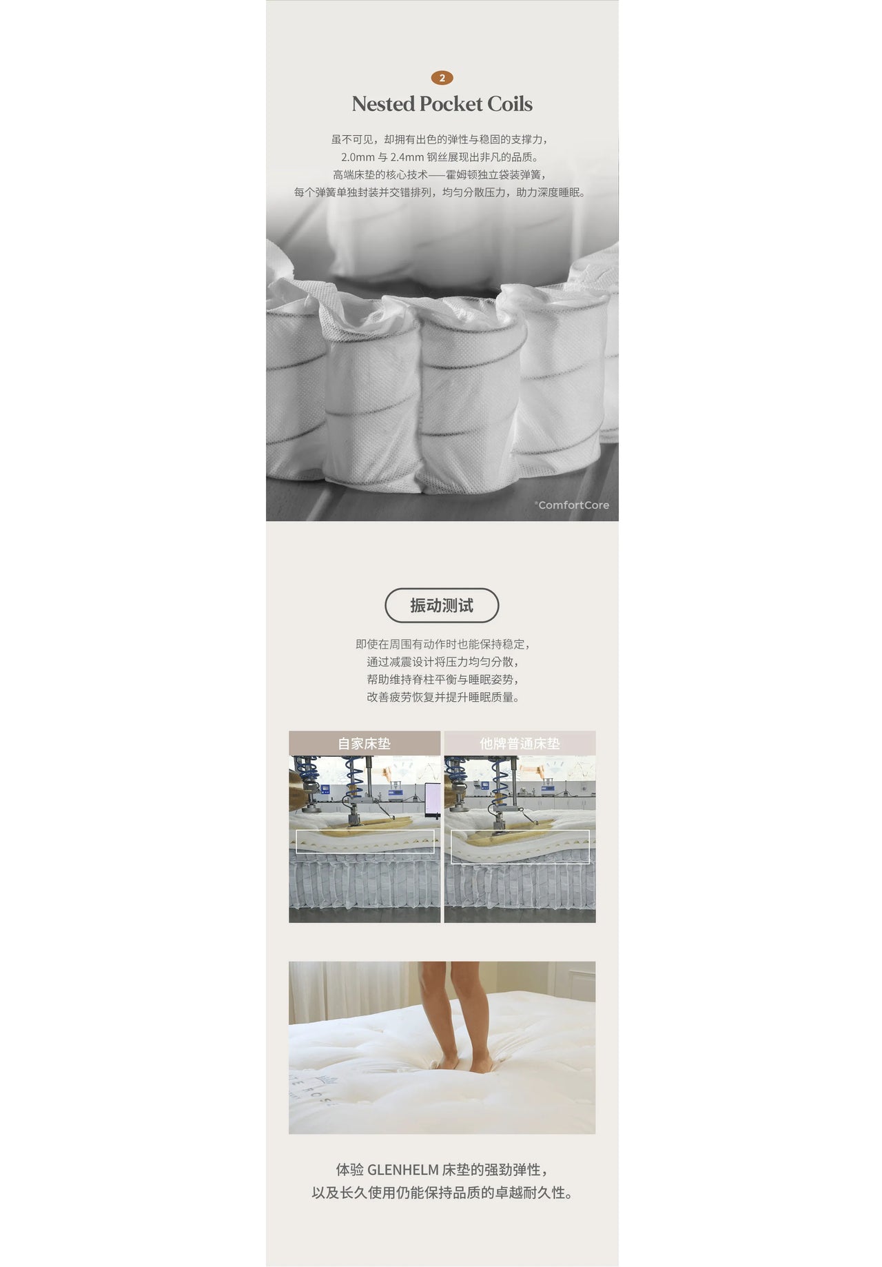 • 弹簧层:独立袋装弹簧 —— 2.0mm(中等偏硬)或 2.4mm(偏硬)
