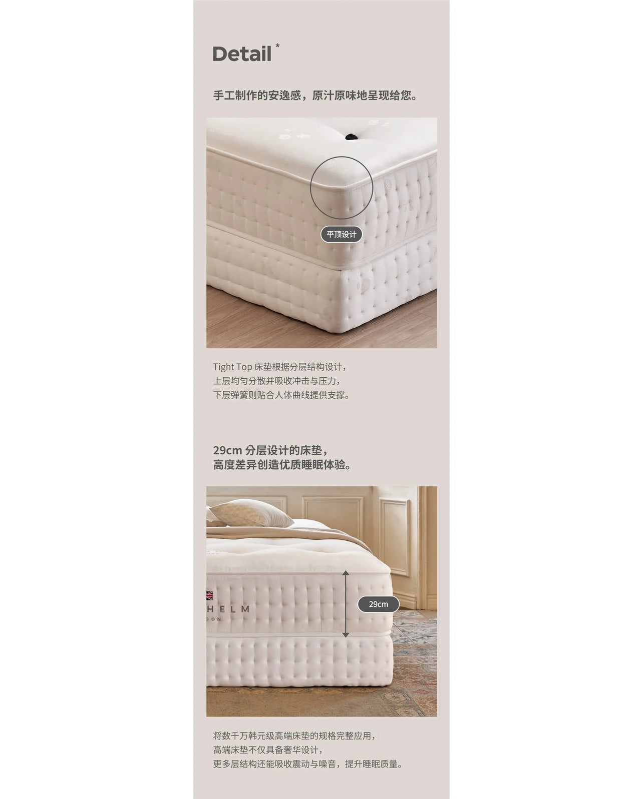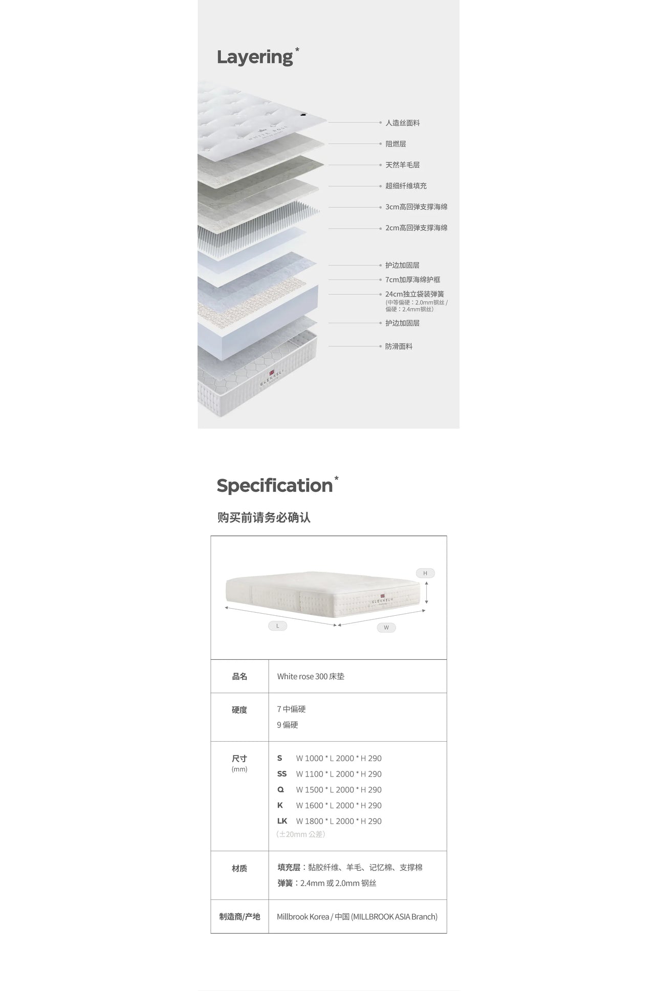 • 舒适层:人造丝、羊毛、记忆海绵、支撑海绵